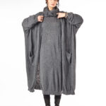 TUBE dress is styled with CAPE coat or with MAXIMUS cardigan